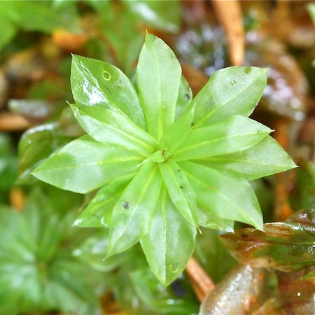 Kookas, jopa 10 cm korkea sammal, muodostaa tiheitä kasvustoja.